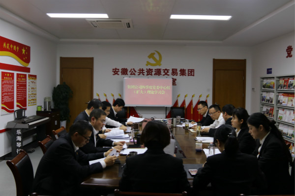 11月9日下午,安徽公共资源交易集团(以下简称“交易集团”)党委召开四季度党委中心组(扩大)理论学习会,学习党的十九大报告原文及新修订的《党章》。交易集团党委书记刘先杰,党委委员汪浩、何平、陶欣,总工程师潘兴林,各部门负责人,各党支部书记、委员近30人参加会议。