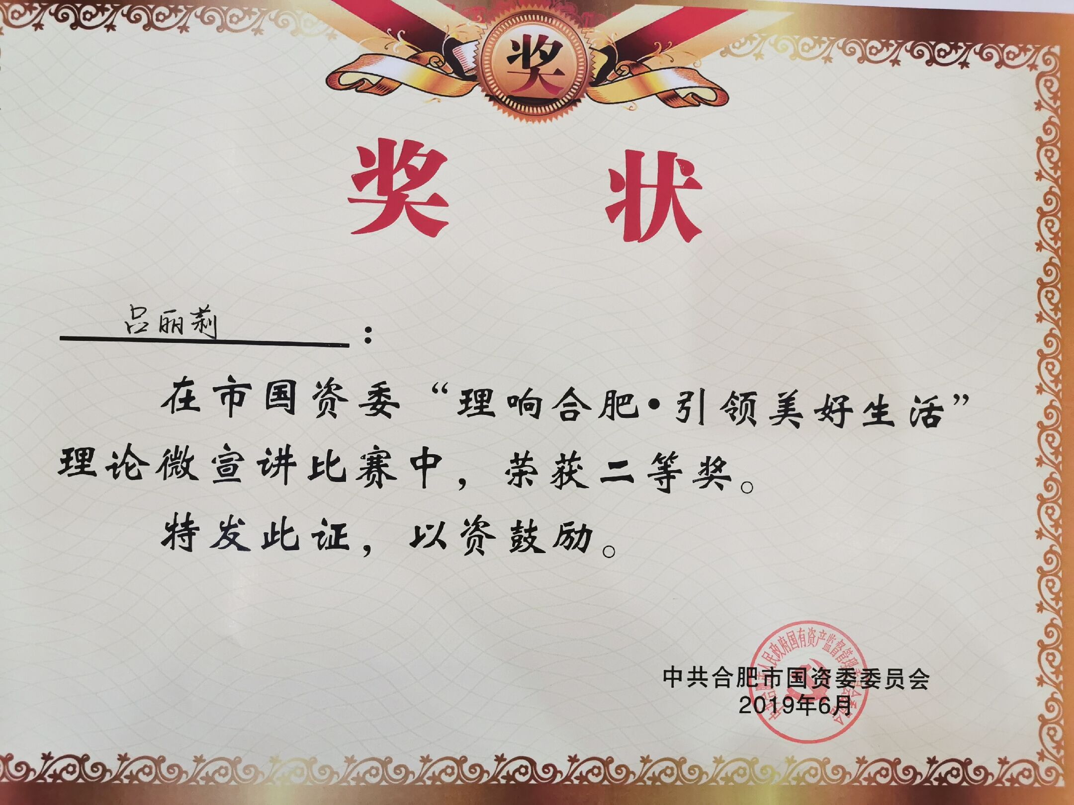 6月12日,合肥市国资委举办的“理响合肥 引领美好生活”理论微宣讲比赛在合肥产投集团举行,交易集团高度重视,通过内部选拔出了产权党支部吕丽莉同志参加,并最终获得二等奖。