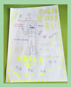 10月29日,得知所住小区封控的消息,我就地转岗,积极配合社区作人员送抗原、进行核酸扫码及采样工作,加入发放物资大队,确保信息准确,及时送去了居民所需的食物。10月30日,连日的高强度工作,不争气的颈椎又犯病了,在孩子的催促下我赶紧起床,出门前孩子画了一幅暖心的抗疫海报送我,我浑身鼓足了干劲。