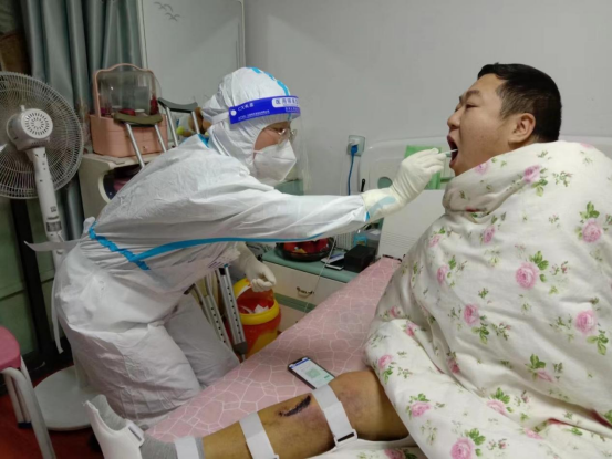 一周以来,我参加了防疫物资分类、核酸扫码、核酸采样及居家隔离居民上门采样等工作,共采样10000余人次。因为不是专业的医护人员,我利用晚上学习医护知识,不仅要保证居民的安全,也要保护自身的安全。记忆犹新的是第一次给次密接家庭采样,“第一次亲密接触”,我的心情很忐忑,担心手法不够专业,防护没有做到位,社区的姜姐一直给我信心,圆满完成了任务。隔离不隔心,做好居民的“心理辅导员”,用关心与实际行动换来居民的认可,才能建立大家众志成城战胜疫情的信心。社区的学生很多,大多利用网课课间采样,我们便开设了学生采样专业,一眼望不到头的队伍,密密麻麻的人头让我很是紧张,我思索着怎样才能效率高?看着隔壁汪老师娴熟的手法,我有了思路,半天坐下来,我也成了采样“熟手”。闷热的防护服浸了很多汗水,眼镜也起了一层雾,面罩上的水珠不断地往下滴,当大白队友们说起合肥市人民政府通报采样阴性的消息时,大家不禁长舒一口气。工作中遇到一些老人不会操作手机,言语困难亦或是没有安康码,遇到此类问题都需要下沉志愿者耐心讲解、想办法解决;核酸采样每天一检,有个别居民出现抵触烦躁情绪,这就要求我们做好社区防疫的“宣传员”、“守护员”,聊几句家长,多几句问候,心与心自然亲近了许多。