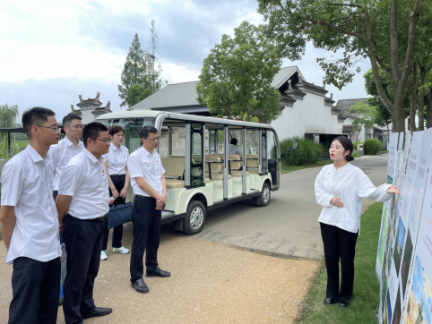 雨后的磨滩日隐云开,山水相成。随着大巴车缓缓驶入示范区,一条条静谧整齐的乡路、一片片青绿丰茂的麦田、一排排风格独特的民宿映入眼帘。潘兴琳一行在滨湖集团成本部经理操三齐和工程部经理赵晓锋等人的陪同下,先参观了以近郊野奢民宿为主线的圩美宿集,感受乡村最大的自然基因与现代建筑的完美艺术融合,而后乘坐观光巴士到达磨滩大街乡村民俗体验区,感受磨滩大街昔日繁华和风土人情。在参观过程中,潘兴琳就项目招标细节和项目施工具体情况进行了详细的询问和深度的交流。随后在磨滩民宿活动中心召开了座谈会。