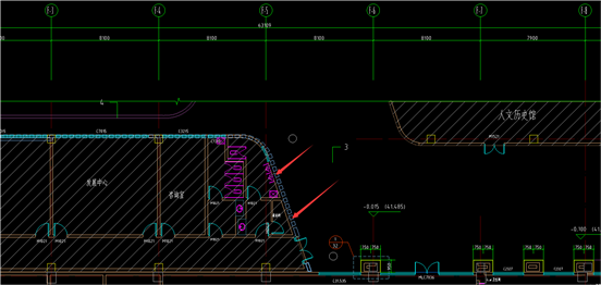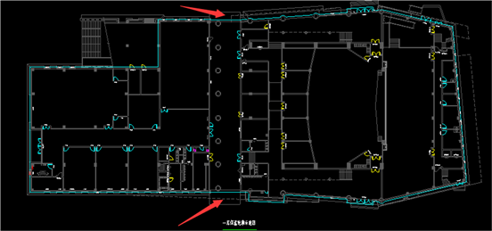 4.三层配电干线平面图\P(12.000标高):平面图体育场两侧是什么标识,请明确。