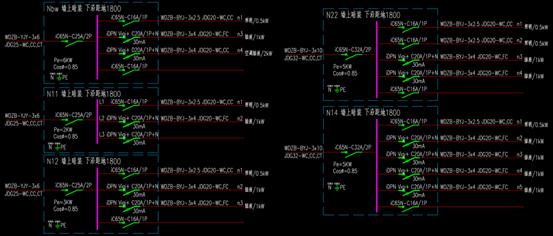3.配电平面图中2~4ALcf的1#、2#回路N40、N30配电箱均未标注,请明确。