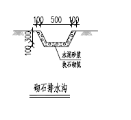 回复:0.5*0.34截水边为M7.5砌石排水沟,底宽40cm。