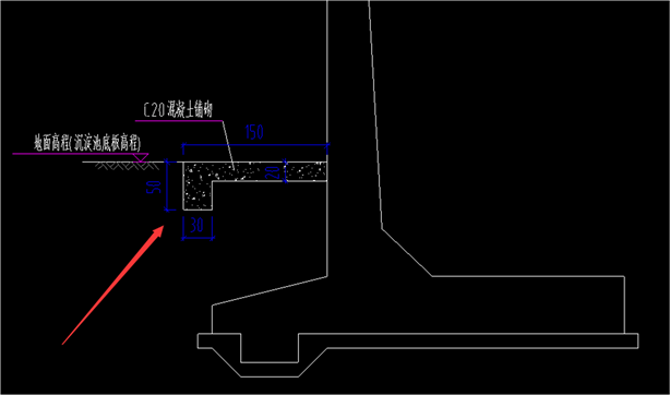 11、考虑到五水厂处沉定池可能继续利用,为防止淤泥及池中水浸入挡墙基础,五水厂两侧挡墙基础增加加铺。结构如图: