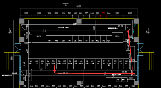 25.高压柜G05~G12至室外1#~8#箱变的电缆路径是否按下箭头所指至配电房东北角预留洞口下地库接高压桥架至室外箱变?