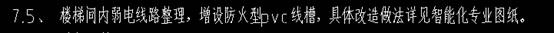 4、安装工程:包含楼梯间照明工程、智能化工程、充电桩管道预埋、弱电线路整理、楼道内表箱洁化、电梯按钮更换、雨水管改造、完善消防设备等;