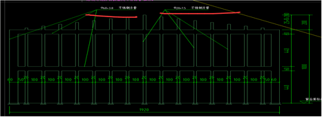 2、横杆立杆材料、规格:Φ40*3不锈钢圆管;