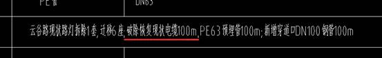 (3)莲花路辅道照明单位工程中:DN100镀锌钢管150米;PE63管200米;VV-1kV-5*16mm2电缆200米为暂定工程量。