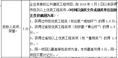 2、获得过省级优质工程奖项(如安徽“黄山杯”)的得1.5分。