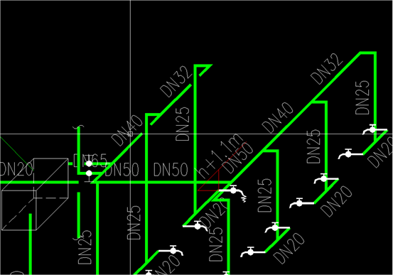 25、请明确下图箭头所指干管及支管管径。