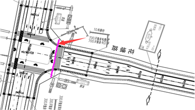17、花塘路-治中路交通标志牌、信号灯、电警图示淡显部分是否列入清单?(道路施工起点为K0+32.528,建议以下图粉红色线为界均列入清单)