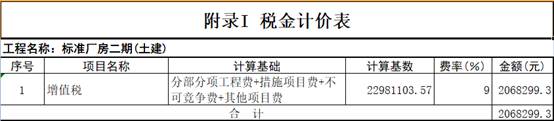 4、综上所述,本项目标准厂房二期(土建)单位工程最高限价由21770587.85元调整为25049402.89元;1#仓库(土建)单位工程最高限价由19166544.85元调整为19232595.75元;2#仓库(土建)单位工程最高限价由20992609.35元调整为21058660.25元;项目最高投标限价总价由101921230.92元调整为105332147.76元(大写:壹亿零伍佰叁拾叁万贰仟壹佰肆拾柒元柒角陆分)。