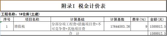 2、1#仓库(土建)单位工程工程量清单第102项 “外墙装饰砂浆”(项目编码:WB011406004001),综合单价由151.72元/平方米调整为194.6元/平方米;最高限价表格调整如下: