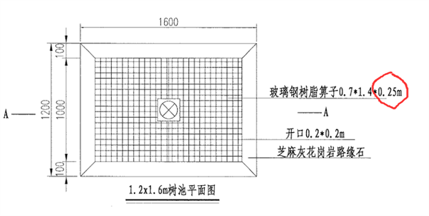 回复:以树池大样图具体尺寸1.6*1.2*1.6m为准。