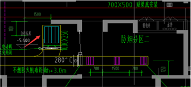 5、如图示负一层暖通图纸未标注此处风管尺寸,请明确?