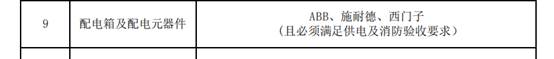 《品牌推荐表》中第9条的品牌是指柜内元器件吗?