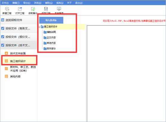 1.投标软件中投标文件(技术文件)中施工组织设计(如下图)是否仅导入施工单位的施工组织设计即可,不含设计单位的设计方案?如设计单位方案同时也需要上传,请问上传投标软件哪里?