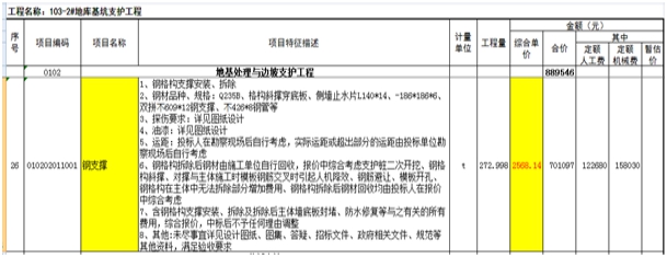 3、2#地库基坑支护工程清单第26项钢支撑清单项目控制价未包含主材费用,且远低于市场成本价,请核实。