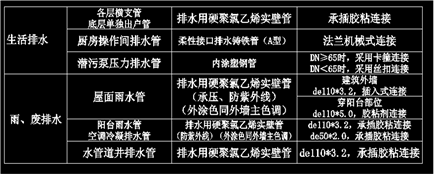 雨污出户支管及压力排水管管材见下表:压力排水采用内涂塑钢管,埋地部分外部采用加强级防腐处理。