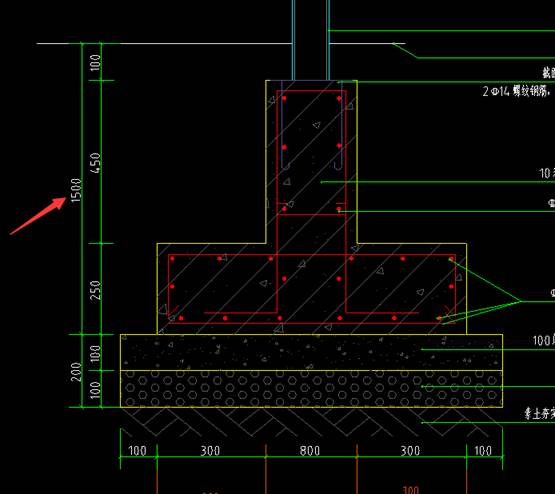 标识标牌基础箭头所指位置标注深度1500毫米是否有误,请明确?