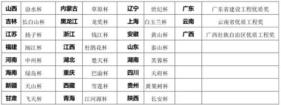 请问:省级及以上优质工程奖项是否只认可:以下奖项、荣誉?