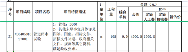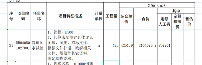 2、调整后的E.1 分部分项工程量清单计价表第21项如下表: