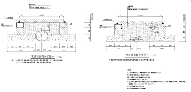 请明确排水工程数量表“管线保护200m”的管线保护类型及保护结构图。