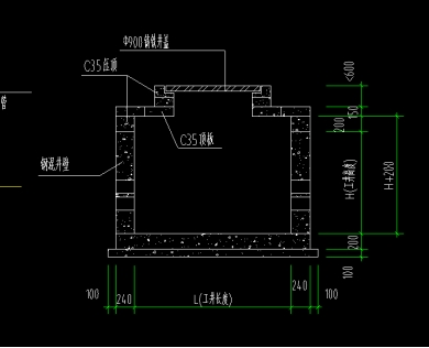 ,图示尺寸为800*800mm,具体尺寸以图纸标注为准,做法参照以上图纸,其中垫层为C25,沟壁为C35,盖板采用高强度无机复合盖板,板宽500mm,支架间距2m,排水管不计。