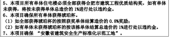 12、本工程质量目标要求所有单体确保市优质工程“琥珀杯”,所有单体指15栋住宅楼,还是包括配套商业也要创优?另外施工组织设计评分表中要求创“黄山杯”,是否质量目标也是确保“黄山杯”?