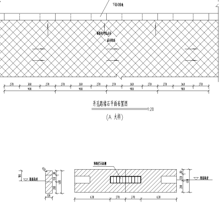 答复:机非隔离侧石采用仿石材质,侧石开孔安装拦污格栅,格栅中到中间距900mm。
