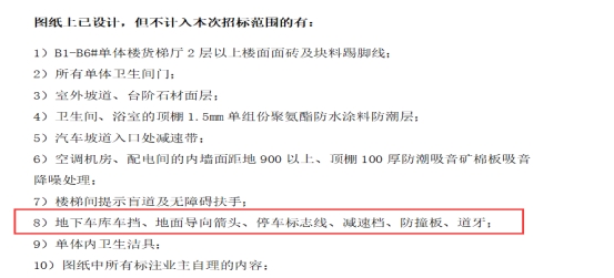 疑问4:地下室标线、车档、护角、减速带、转角镜等一系列标志标线工程是否在施工范围内?