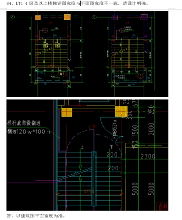 答:已核实B7#楼LT1建筑图与结构图无此问题,其余楼栋有此问题时,按招标补疑第84项回复计入。