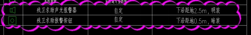 电气一层电力平面图中,如下图所示,残卫呼叫按钮及报警器的的名称规格型号、参数及安装方式未知,请明确。