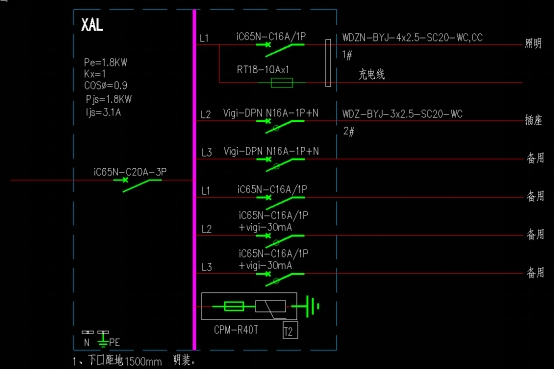 电施图中,如下图所示,PL配电系统图出线回路平面图中未设计,工程量如何计入,请明确。