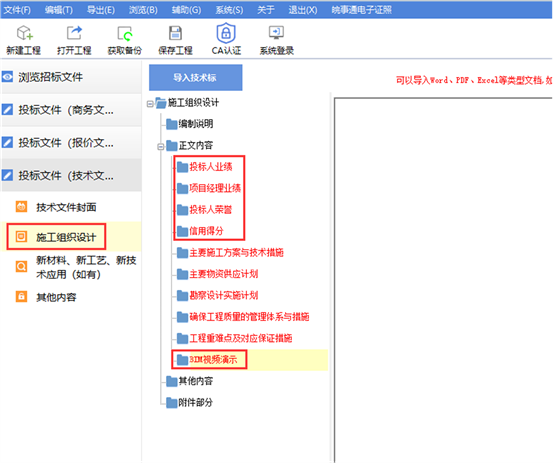 回复:本项目第三章 技术评分标准中要求的“主要施工方案与技术措施、主要物资供应计划、勘察设计实施计划、确保工程质量的管理体系与措施、工程重难点及应对保证措施”可上传至施工组织设计节点,BIM视频演示须在投标截止时间前在开标现场递交。