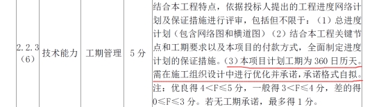 9.本项目第三章评标办法2.2.3(6)工期管理(P72页)中提到“本项目计划工期为360日历天。需在施工组织设计中进行优化并承诺,承诺格式自拟。”。请问:该承诺内容是否为计划工期360日历天内完成本项目竣工验收的承诺?