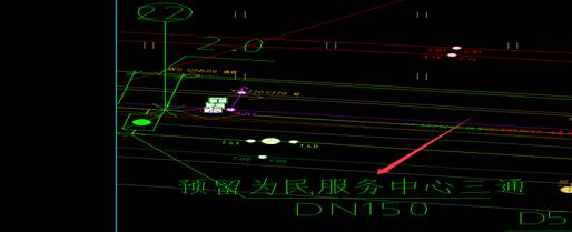 2.9接为民服务中心支线的三通和蝶阀根据实际情况,三通调整为DN200,蝶阀调整为D363H-16C DN200(位置见以下截图)。