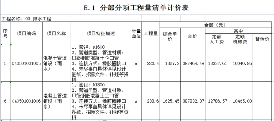 “03-排水工程”单位工程中清单第5、6项,项目特征中管道材质表述有误,工程量、综合单价等均无误,修改如下: