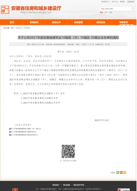 附件:关于公布2021年度安徽省建筑业10强县(市)10强区 50强企业名单的通知