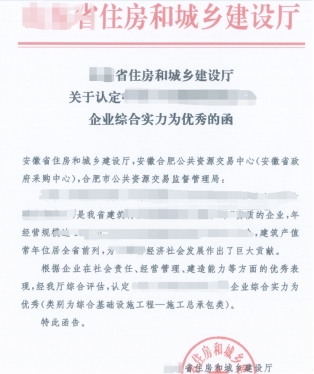 1、招标文件详细评审标准中综合实力认定成果:“自2021年1月1日以来,获得企业注册地省级及以上住房和城乡建设主管部门最新公布的企业综合实力认定结果(认定类别为综合基础设施工程-施工总承包类)为优秀的得3分;除安徽省外,其余省市企业综合实力认定结果对照安徽省执行。”请问我单位有企业注册地省级住建厅颁发的企业综合实力为优秀(类别为综合基础设施工程-施工总承包类)的红头文件,请问是否予以认可为优秀可得3分?截图如下。