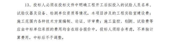6、本项目招标文件补疑1中,要求投标人在投标文件中明确工程开工后拟投入的试验人员名单、试验仪器及设备、检测单位资质等情况。