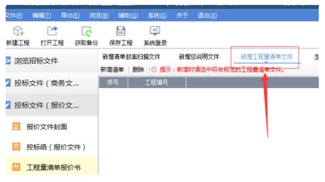 (1)在下图新增工程量清单文件中导入“1.18zhtb” 文件后, 直接生成工程量清单(不做填写)。