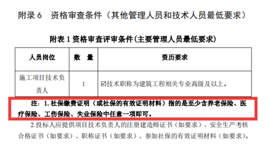 答:施工项目技术负责人无需社保证明,具体按招标文件执行。