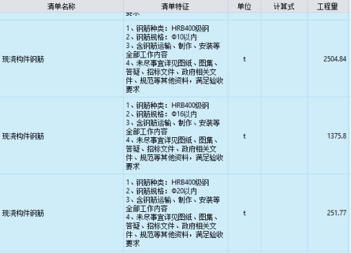 工程量清单中现浇构件钢筋规格: