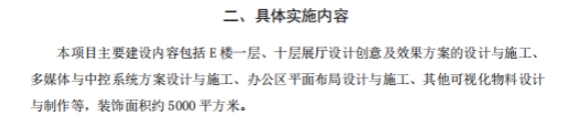 3、招标文件需要各投标人提供设计方案,招标文件中招标人的需求表述不详细,不清晰。展厅的主题、展示内容、展示板块等均未表述。办公区域的功能划分等相关需求也未表述。为保证招标的公平公正,招标人不能私下单独与个别企业对接需要。请求招标人通过招标平台统一公开项目详细需求。