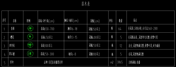 3、绿化苗木清单量与图纸《苗木表》数量不一致;