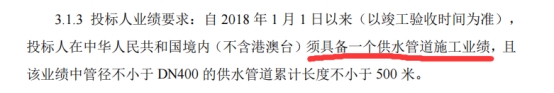 1.招标公告3.投标人资格要求3.1.3投标人业绩要求:自2018 年1月1日以来(以竣工验收时间为准),投标人在中华人民共和国境内(不含港澳台)须具备一个供水管道施工业绩,且该业绩中管径不小于DN400的供水管道累计长度不小于500米。请问:市政工程项目业绩中包含“管径不小于DN400的供水管道累计长度不小于500 米”业绩条件且长度和口径在竣工验收证明文件能够体现。是否满足招标文件要求?