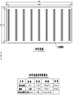 回复:本项目对于大型标志板(一般为5平方以上宽、高尺寸均为30倍数)采用铝合金拼装板,拼装板采用300型与150型板材进行拼装,单位重量见S2-16-14-3第2页所示。