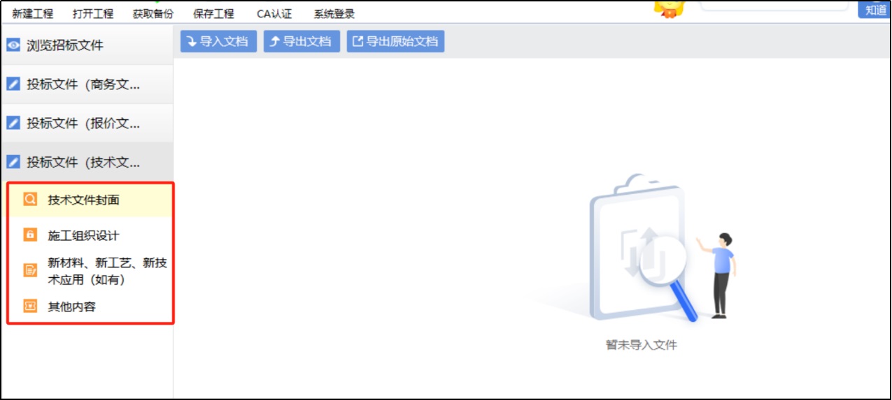 4.新点投标文件制作软件中技术文件施工组织设计只有一个版块上传,根据招标文件P61页技术文件评审标准分为运营能力、运营方案、运营效益分析、施工组织设计方案4个子项分别评审。